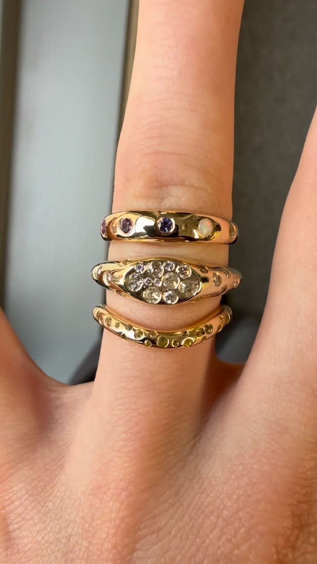 All pieces are designed and made in London’s jewellery district between a handful of local artisans. Diamond’s and gemstones are sourced from Hatton Garden’s local gemstone and diamond dealers.